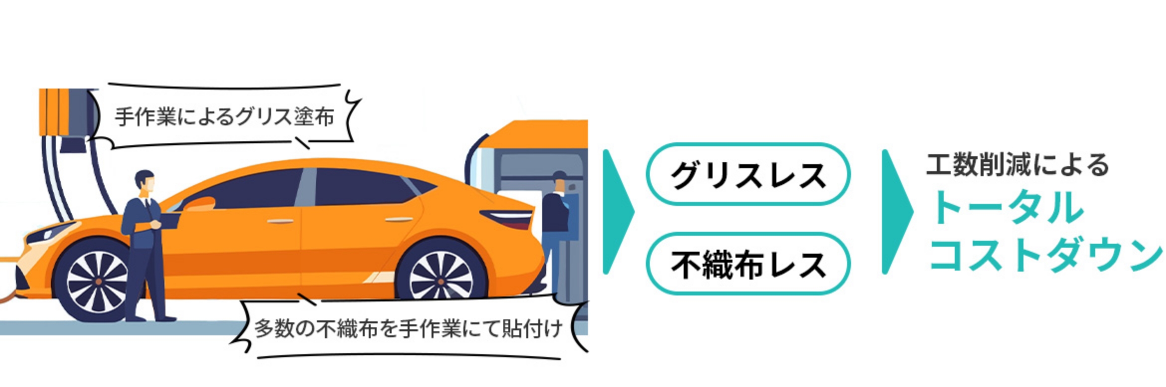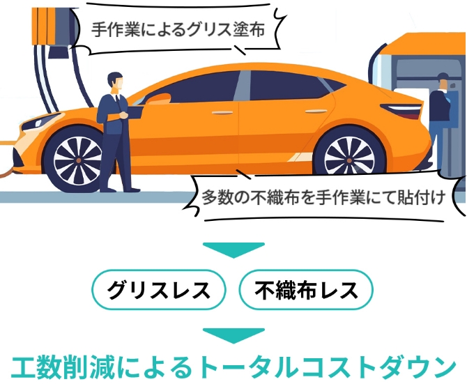 音の発生が疑われる部位へのグリス塗布や不織布貼付が不要